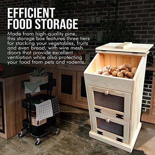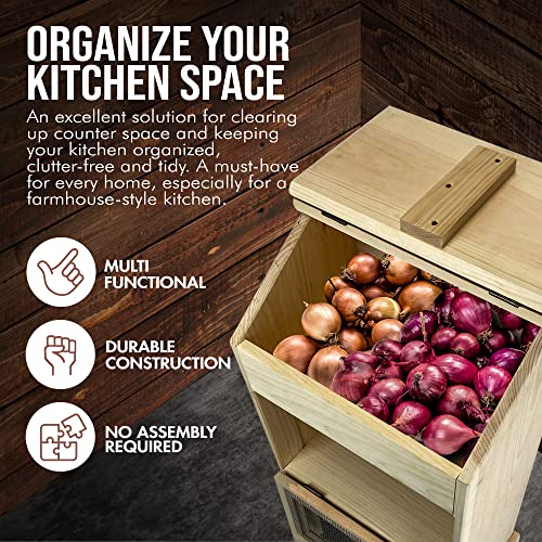 - FARMHOUSE VEGETABLE BIN: This vegetable storage is an essential item for your kitchen pantry to clear your kitchen countertop space. It is a decorative handmade wood storage box made of high-quality pine.