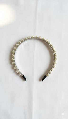 Generic - Pearl Headband, Metal Frame with White Pearls, Hair Accessory (Silver)