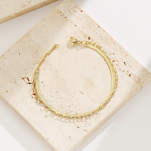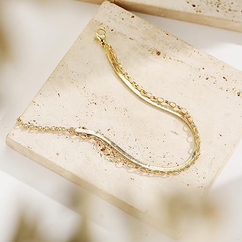 Pencros - سوار متعدد الطبقات مطلي بالذهب عيار 14 قيراط، سوار أنيق بتصميم متعرج مع سوار بحلقات على شكل بيضاوي، سوار خرز لطيف للنساء والبنات، من بنشروس