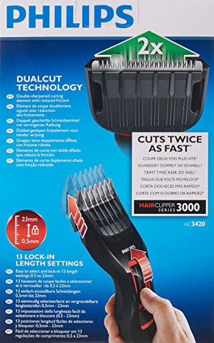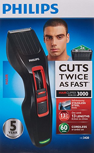 Philips - Philips Hair Clipper Series 3000 Stainless Steel Blades – 13 Length Settings – Cordless or Corded use – 60mins Cordless Use/8h Charge – HC3420/15 – International Warranty