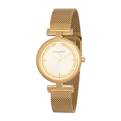 Pierre Cardin - ساعة للنساء من بيير كاردان، CMD.3537، تناظري، بمينا اللون البيج، بسوار ذهب