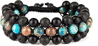 Pink Men Bracelet Black Onyx & Black Lava - Two Pieces