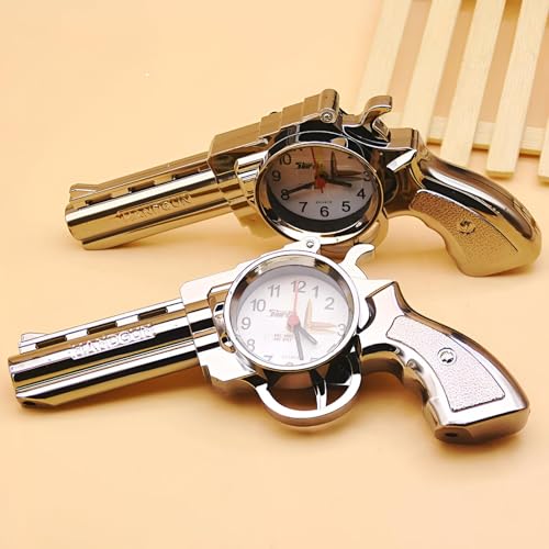 Generic - ساعة منبه بيستول - ساعة معدنية فريدة من نوعها مع آلية انالوج دقيقة، صوت تنبيه واضح، طلاء فضي فاخر، تعزز ديكور المكتب او المنضدة كهدية عصرية.
