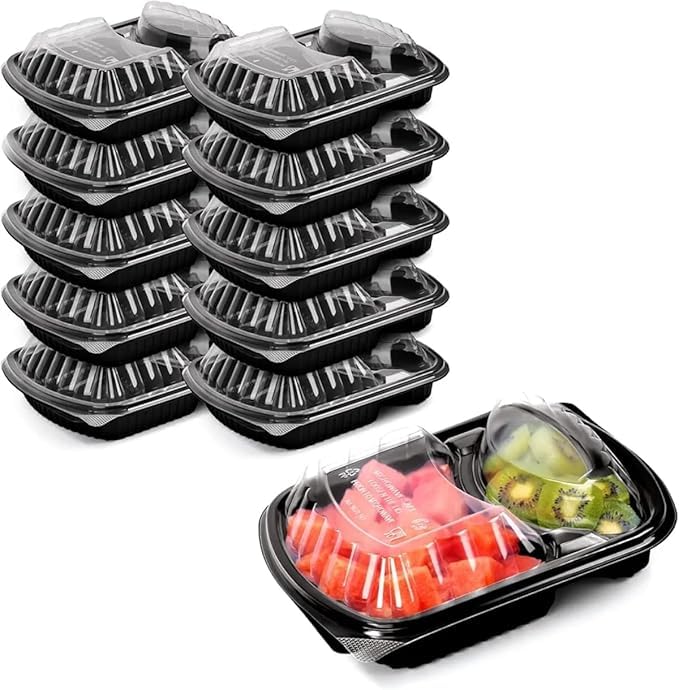 Generic - Plastic Plates Microwave Meal Prep Container Reusable Bpa Free – [10 plates] Disposable Food Container With Lids Vacuum Seal Meal Prep Microwaveable Freezer To Go Divided Food (Two sections)