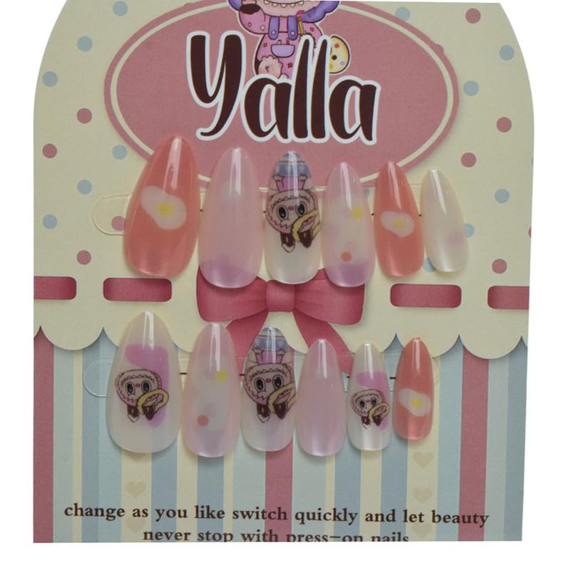 Generic - Plastic Press On Nails Set With Almond & Multi Design For Children, 12 Pieces - Multicolor - 224