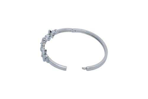 Generic - سوار حلقي بمفصلات من البلاتين مرصع باحجار الزهور والعنقودية للنساء - فضي
