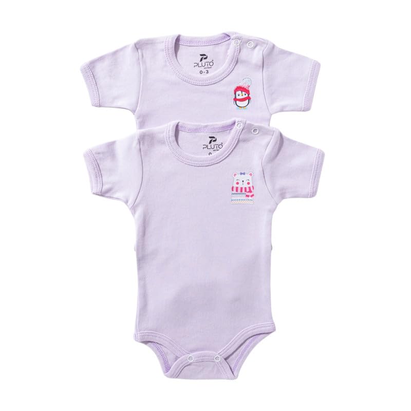 PLU2 Kids - PLU2 Cotton Half Sleeveless Bodysuit For Baby Girl Set, 2 Pieces - Purple