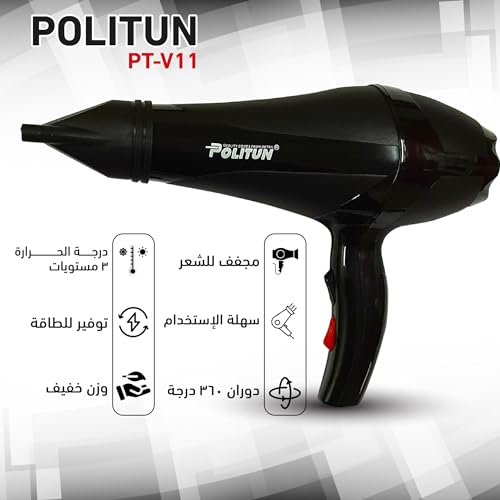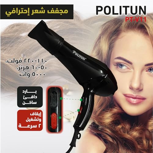 Generic - POLITUN Hair Dryer - 5000 Watts, Fast Drying, Quiet Design, Customizable Settings & Overheat Protection, PT-V11