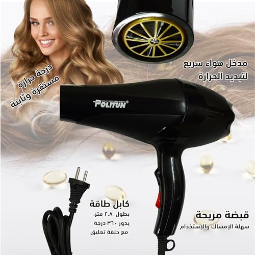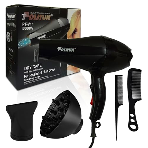 - Professional Salon-Quality Performance: The POLITUN Professional Hair Dryer boasts an impressive 5000W motor, providing optimal power for achieving salon-quality results at home. Experience exceptional drying performance for perfect volume and styling.