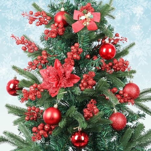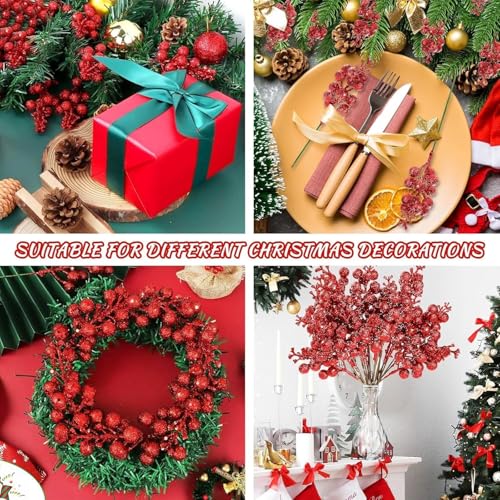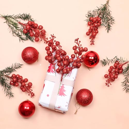 - 【Widely Applicable】These glitter berries stems are good for Christmas tree ornaments, you can twist as round garlands or branches on Christmas tree, also can be decorated your house, Christmas wreath, gift wrapping paper, Christmas tree and so on, increase the Christmas atmosphere.