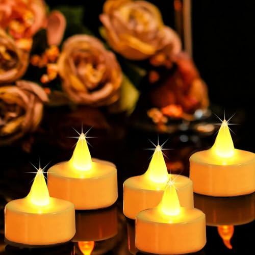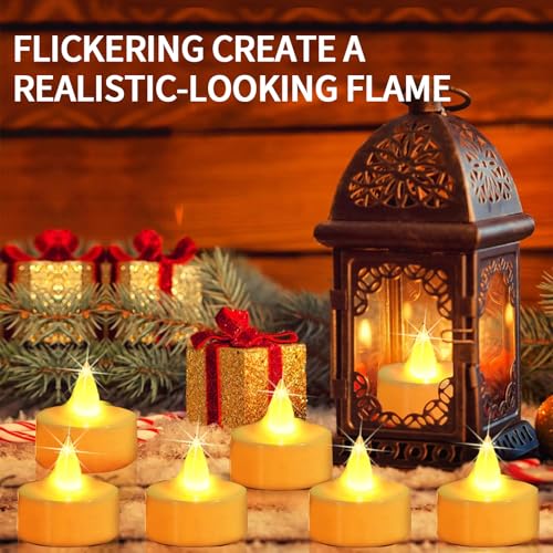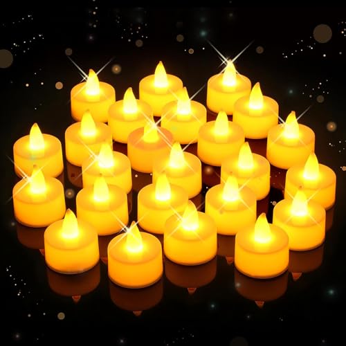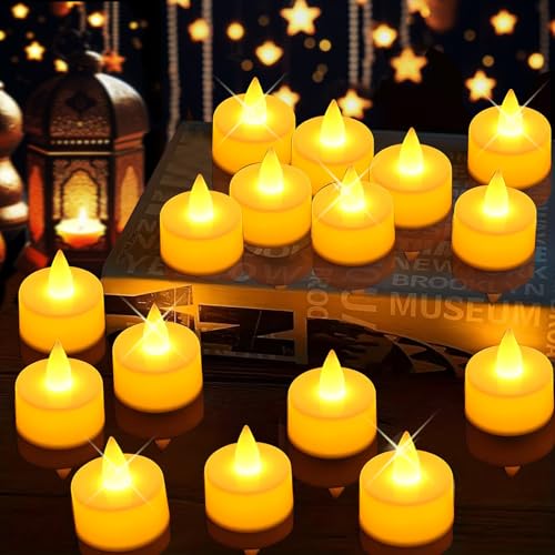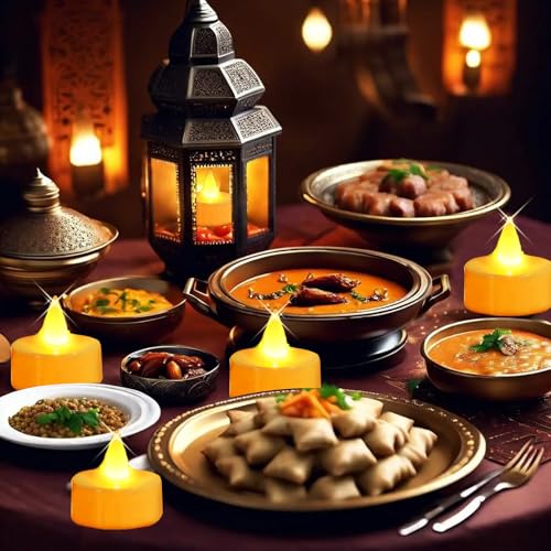 Pomefar - زينة رمضان من بوميفار، 24 قطعة من شموع الشاي، مصابيح LED بدون لهب، شموع كهربائية لحفلات الزفاف، قطع مركزية، ديكور منزلي