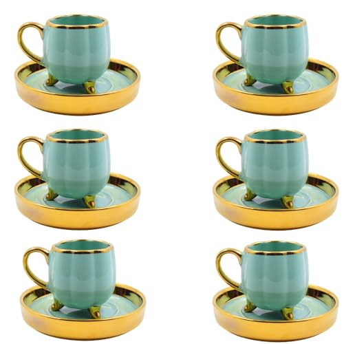Generic - Porcelain Mug with Saucer Set, 12 Pieces - Green