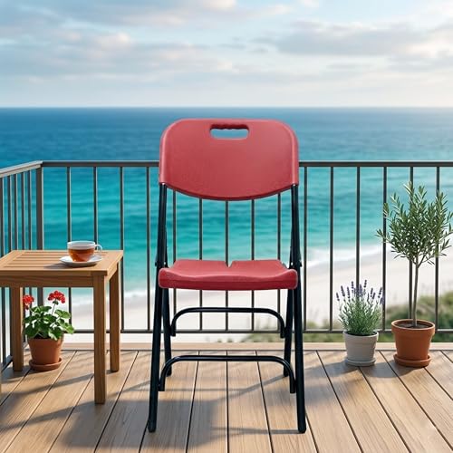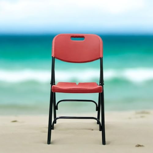 - SunBoat portable folding chairs feature a sturdy steel frame and a comfortable seat with a backrest, finished in red with black steel accents.