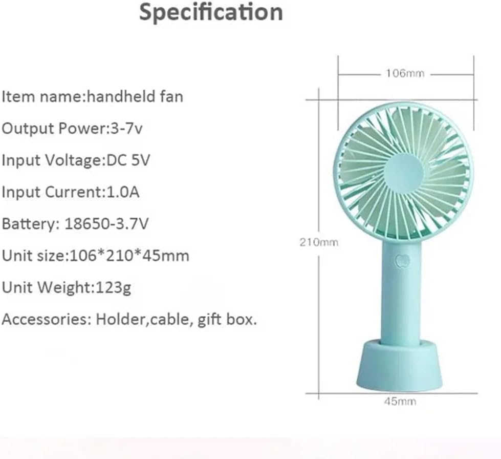 Generic - مروحة يد صغيرة محمولة ببطارية قابلة للشحن بمنفذ USB عالية السرعة 3 سرعات - مروحة طاولة تبريد صيفية مع حامل للمنزل والمكتب والاماكن الداخلية والخارجية والسفر