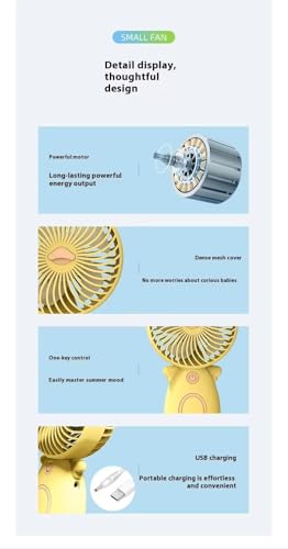 Generic - مروحة يد صغيرة محمولة مع بطارية قابلة للشحن، تصميم مبتكر ، محرك تيار مباشر قوي، كابل USB