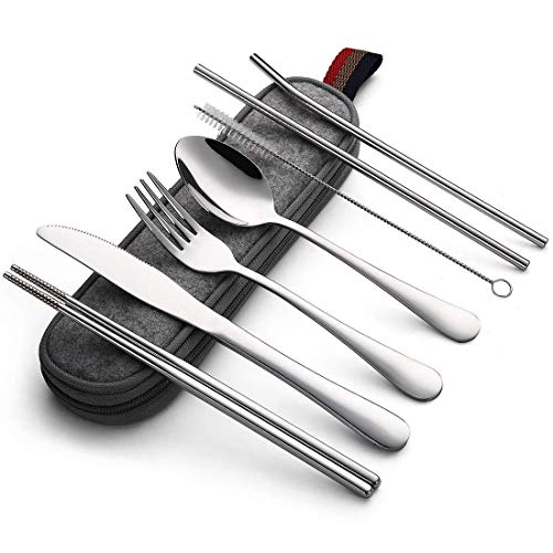 - EASY TO CARRY: This reusable cutlery set is small in size and light in weight ,The 8-piece portable utensils is a must-have for daily use. Suitable for taveling ,working ,school, flight, workplace, eating on the go ,picnic ,camping,etc.