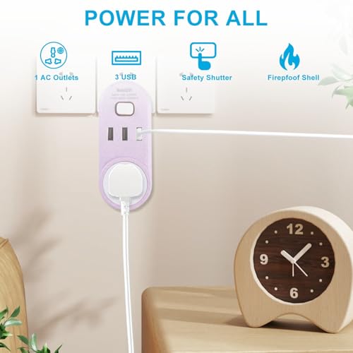 Generic - مقبس تمديد الطاقة، مقبس تحويل 2500 واط، 3 شاحن USB، مفتاح طاقة، شحن تلقائي 10 امبير، حماية من الحمل الزائد، حماية من اندفاع التيار للمنزل او السفر، مقبس الطاقة الجداري، E-01 (ارجواني)
