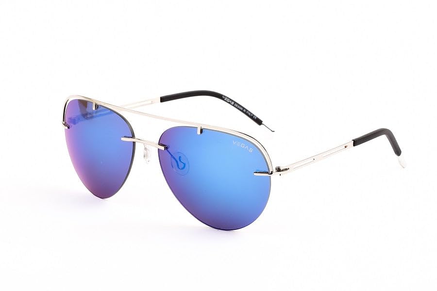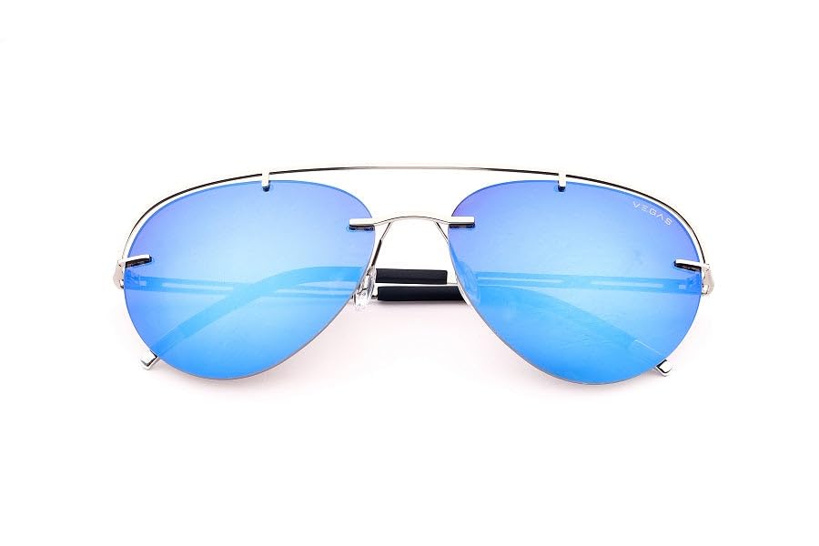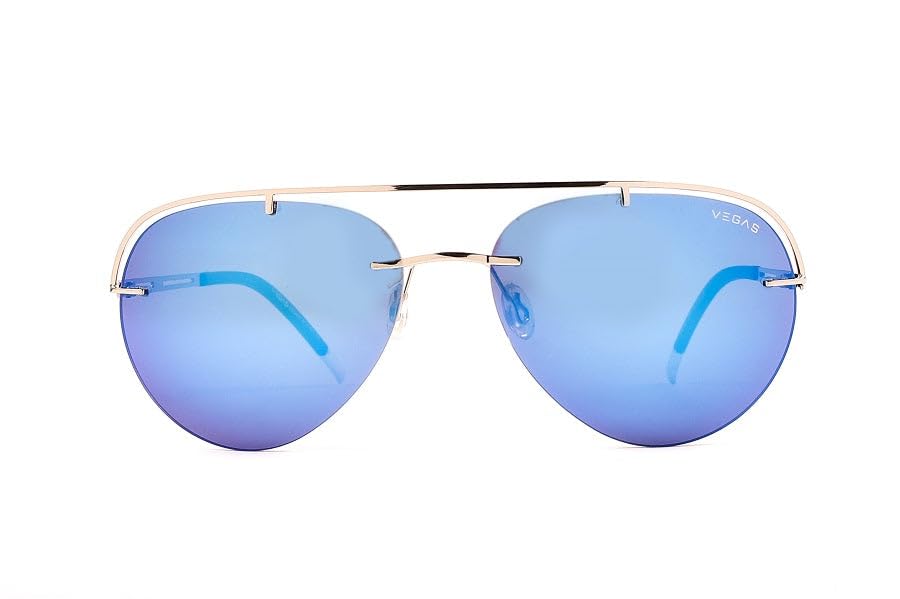 Generic - Premium Aviator Sunglasses, Blue Mirror Lenses, Saddle Brown Frame, Rimless Design