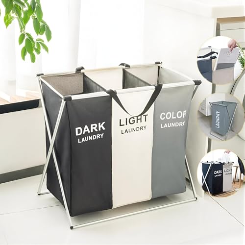 - The three clearly marked compartments enable efficient sorting of laundry by color or type, helping prevent cross-contamination and simplifying the washing process with dedicated zones for whites, darks, and delicates.