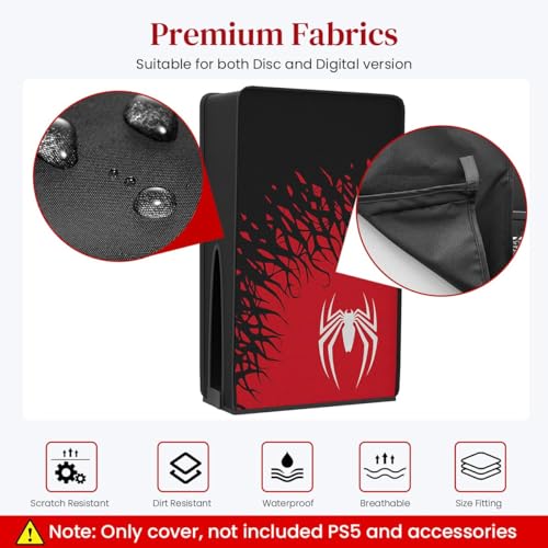PSS - PSS Dust Cover for PS5 Slim, Dust Guard Oxford Cloth Dustproof Anti Scratch Waterproof Sleeve Compatible for PS 5 Slim Console Digital Edition & Disc Edition Accessories (Spider-Man Theme)