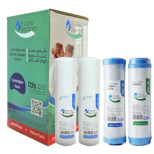 - محتوى العبوة: عبوة اقتصادية تحتوي على 4 شمعات فلتر مياه من بيور سيكرت لضمان مياه نقية وصحية