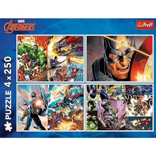 Trefl - Puzzles - "4x250" - Heroic days/Disney Marvel The Avengers_FSC Mix 70%