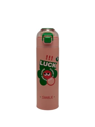 Qshop - Qshop زمزميه حرارى 500 مل المشروبات الساخنة والبارد مع غطاء محكم بزر فتح قفل - تصميم أنيق جذاب حفظ مثالي للحرارة مع تصميم كرتوني مودرن " (Pink)