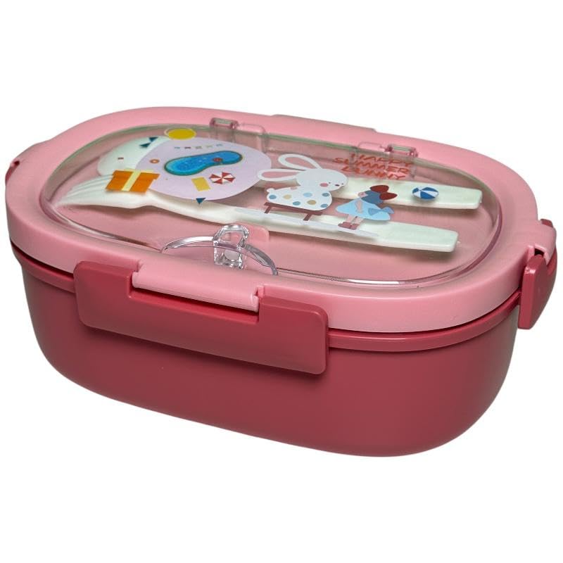 Qshop - QSHOP Kids Lunch Box – 3 Compartments Organizer + Utensil (Spoon & Fork) Perfect for School, Classes, Club, Kids Activities (Pink)