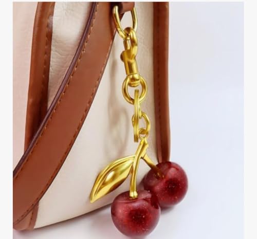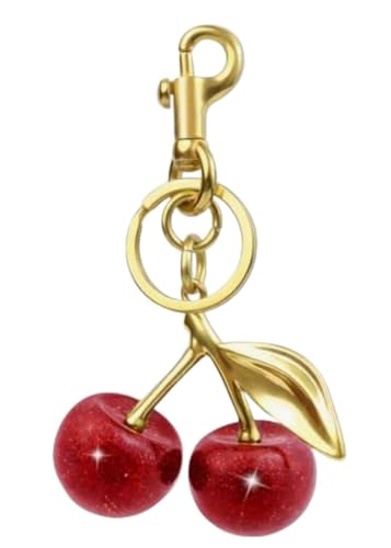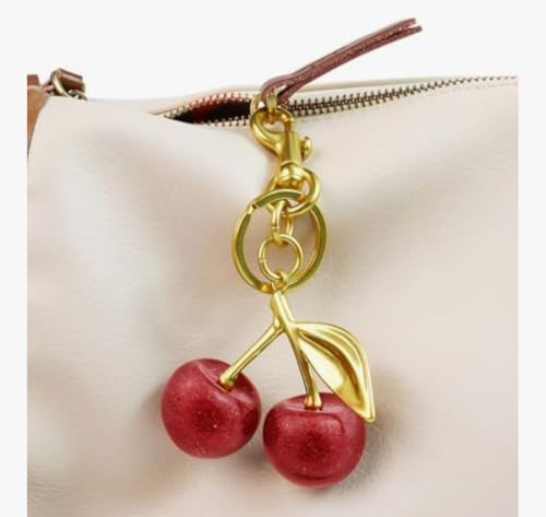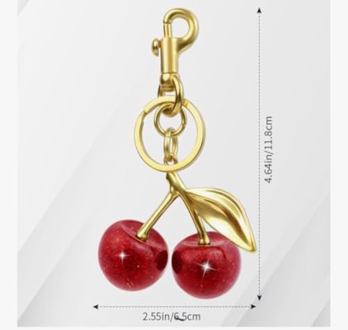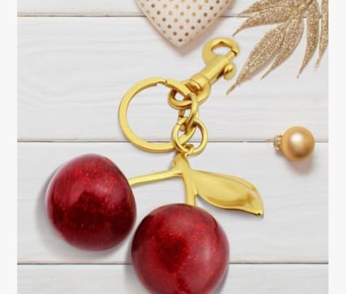 Generic - Quadafy 18K Gold Plated Cherry Keychain, Cherry Purse Charm Made of Metal Hardware and Glittering Resin, for Purse Charms, Handbag, Birthdays, Women's Gifts