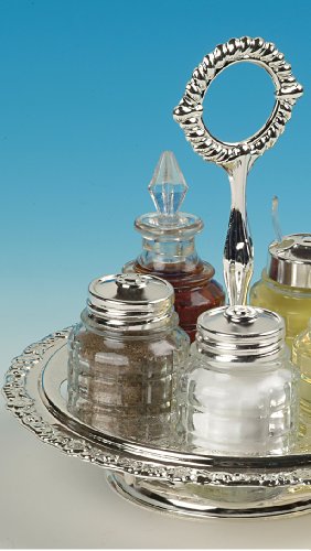Amanda Tableware - Queen Anne silver plated spice set 6 pieces (tray + 2 oil bottles + A jar of salt + a jar of black pepper + a jar of mustard) 0/5956/2