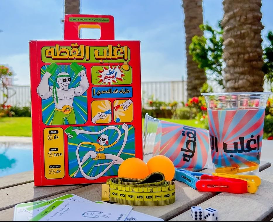 - اللعبة دي ممكن تتلعب بطريقتين خلي بالك! يعني هتتبسط هتتبسط مفهاش كلام! الطريقة الاولي انت ضد صحابك و اسمها "اتحدي صحابك" و الطريقة التانية "قوتك في شلتك" انك تلعب انت و فريقك ضد فريق تاني! كده كده الطريقة اللي هتختارها مش مشكلة، اهم حاجة ان اللعبة دي هتبين مين الجامد اللي هيغلب القطة! مكونات اللعبة 150 تحدي 10 كوبايات 6 كور 6 مشابك 4 زهرات 2 مزورة السن 6+ الوقت 30+ عدد اللعيبة 4+