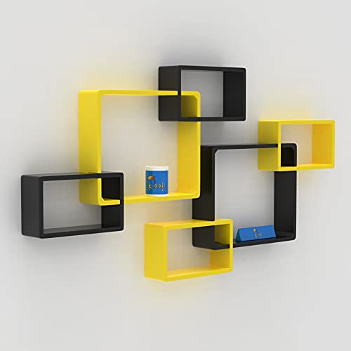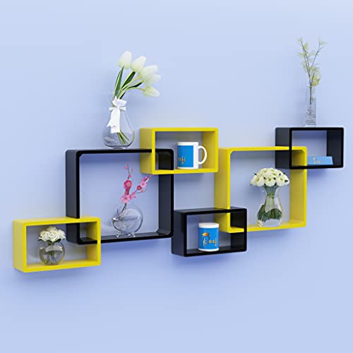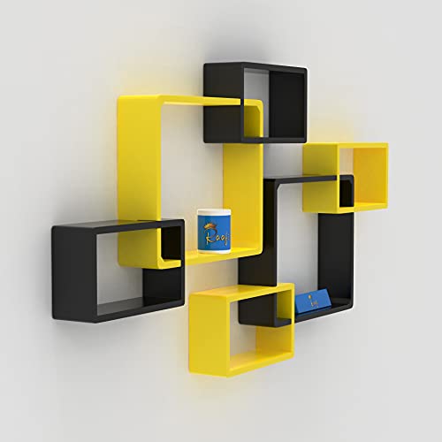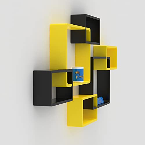 Raafi - Raafi Wooden Intersecting Wall Shelves (Set of 6) (Yellow & Black)