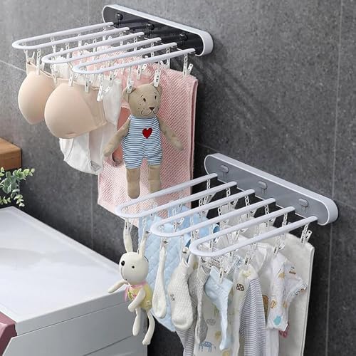 Generic - رف تجفيف موفر للمساحة يثبت على الحائط من 24 مشبك متعدد الصفوف للأطفال، شماعة ملابس صغيرة وشرابات وحمالات الصدر، قابلة للطي الجاف لغرفة الغسيل والشرفة والحمام - أسود وأبيض
