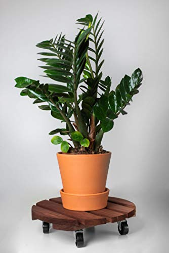 RADO WOOD - وعاء نباتات خشبي - دائري 38 سم - نمط عتيق للاستخدام الداخلي والخارجي - عربة أصيص الحديقة - حامل دوللي على عجلات - بني - بريميوم من رادو