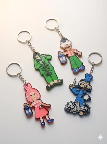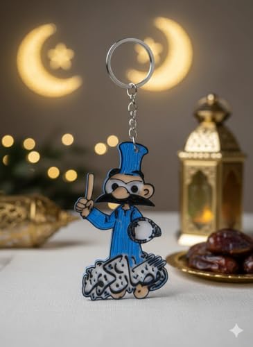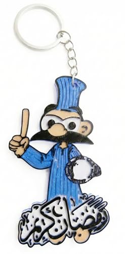 Generic - Ramadan Character Keychain with Arabic Calligraphy, Blue Chef Design with Mustache, 3D Acrylic Charm with Metal Ring and Chain
