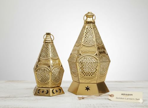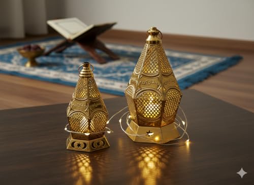 Generic - فانوس رمضان معدن بشكل قبه مزخرف - ذهبي (كبير)