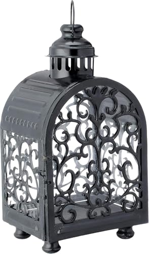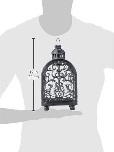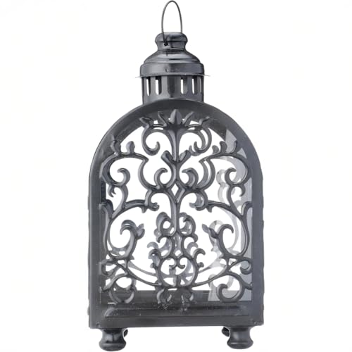 Generic - فانوس رمضان معدني كبير بتصميم كلاسيكي، مع باب مغناطيسي ومقبض معدني - بطول 25 سنتيمتر - لون اسود