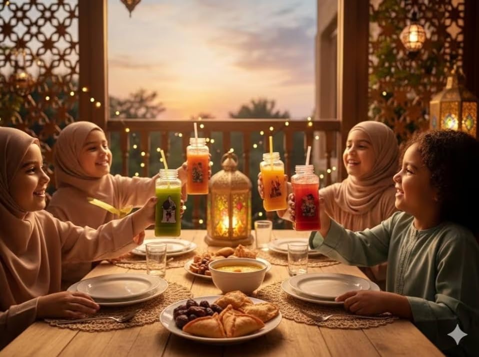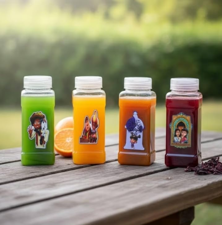 - تصميم رمضاني مميز: تأتي الزجاجات مع ملصقات رمضانية جذابة تضفي أجواء احتفالية مبهجة على مائدة الإفطار والسحور