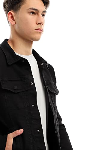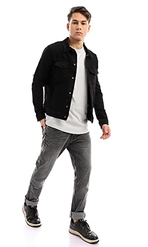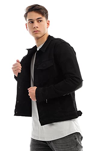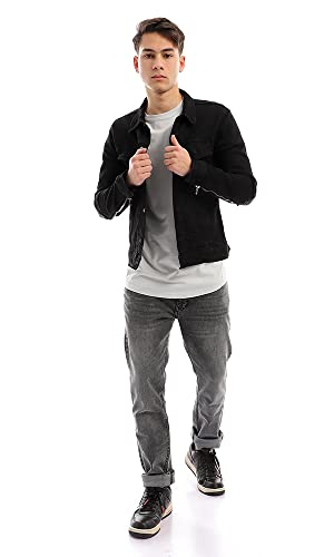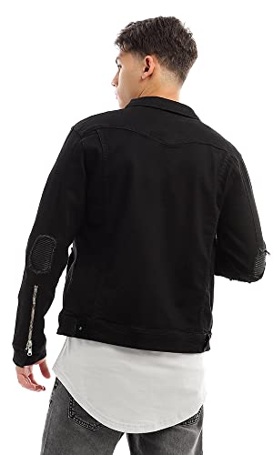 Ravin EG - mens Ravin 93542 Leather Patch Black Solid Denim Jacket Jacket