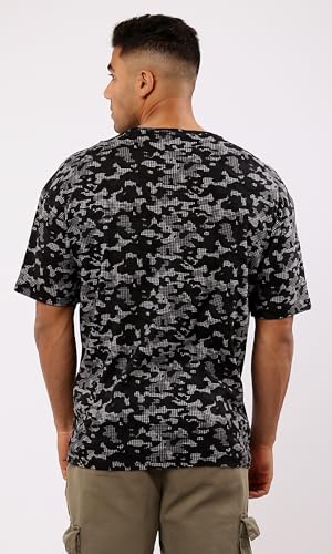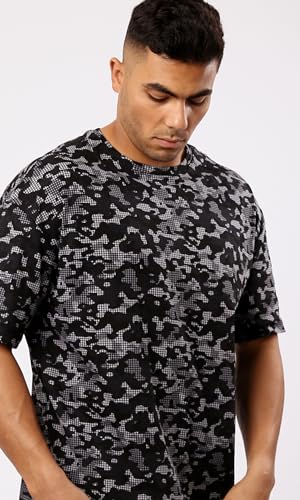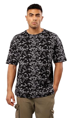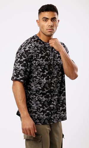 Ravin - Ravin Elbow-Sleeves Cotton Black & Grey Camouflage Tee, Mens, L