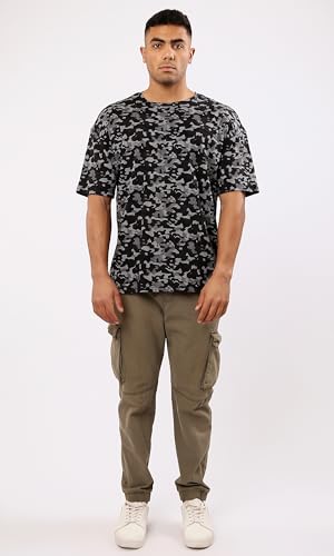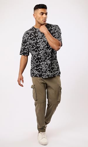 Elbow-Sleeves Cotton Black & Grey Camouflage Tee