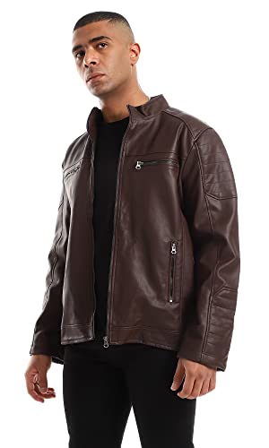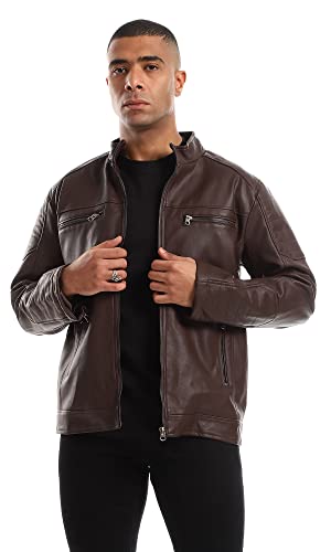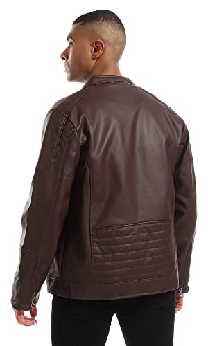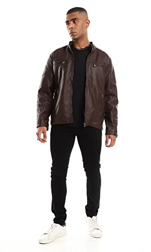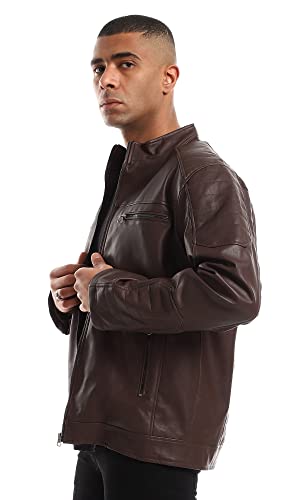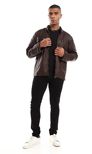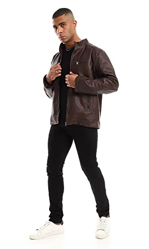 Ravin - Ravin Inner Fur Full Brown Zipper Cuffs Leather Jacket, For Men, Brown, XL