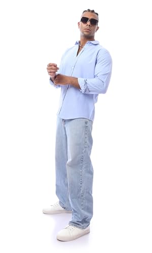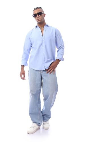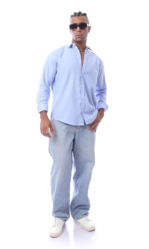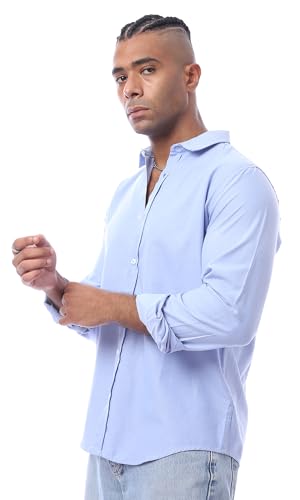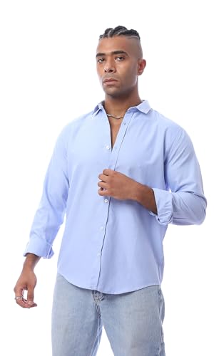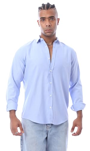 Ravin - Ravin Mens Light Blue Solid Casual Long Sleeves Shirt Modern