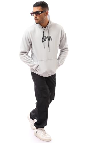 Ravin - سويت شيرت بغطاء للرأس مطبوع عليه من الأمام والخلف "DMX" للرجال من ريفين، رمادي فاتح