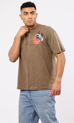 Ravin - تيشرت بقصة مريحة بلون كاكي داكن مرقش وأكمام للكوع بتصميم عصري للرجال من ريفين