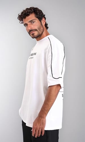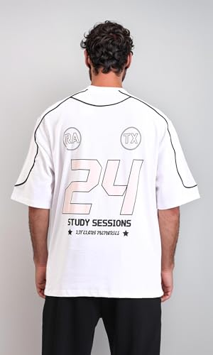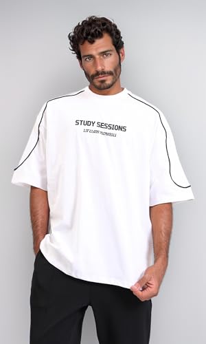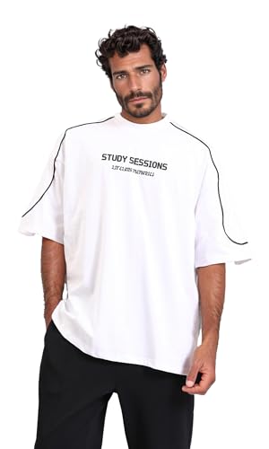 Dsisskai - تيشرت كاجوال مطبوع عليه عبارة "Study Sessions" للرجال من ريفين - ابيض، مقاس L