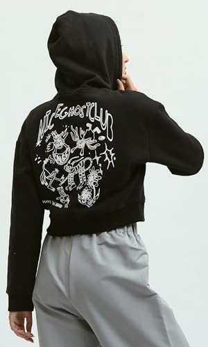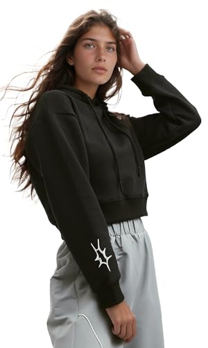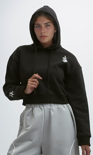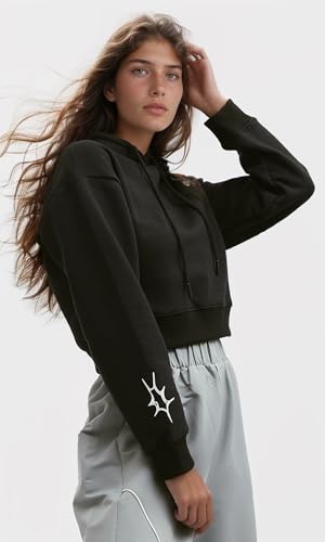 Ravin - Ravin womens Cropped Hoodie Long Sleeves With Printed Pattern Women Sweat Shirt