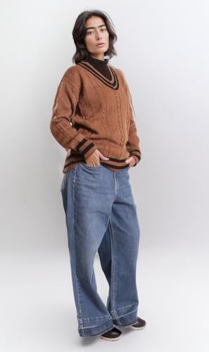 Ravin - Ravin Womens RIBBED V-NECK SWEATER - BROWN Women Pullover