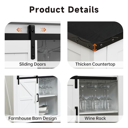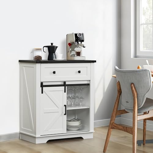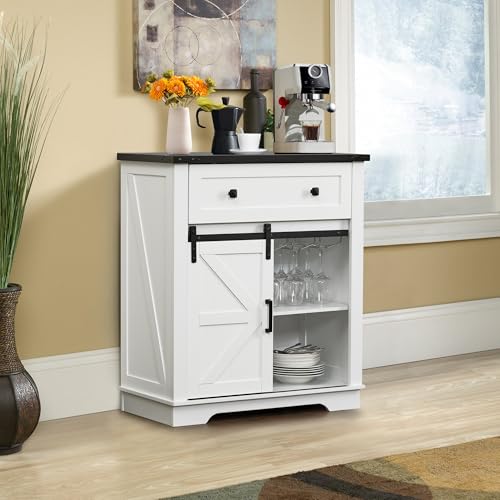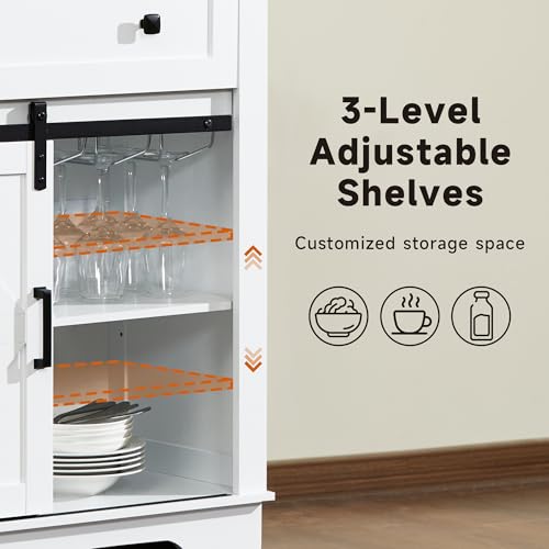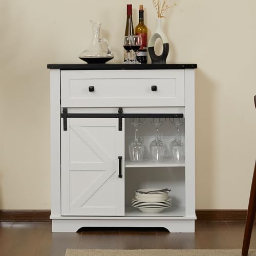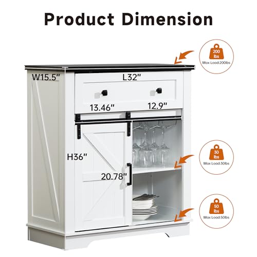 Real Relax - Real Relax Farmhouse Coffee Bar Cabinet with Barn Doors, Sideboard Cabinet with Adjustable Storage Shelves and Drawer for Kitchen, Dining Room, 32 Inch White
