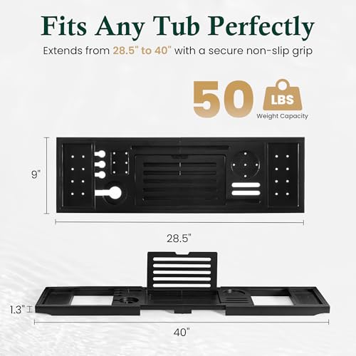 - Adjustable Bathtub Tray (Fits 28.5-40in Tubs)- Angled Slots Secure Tablets/E-Readers for Hands-Free Viewing, Watch Shows Without Slippery Worries